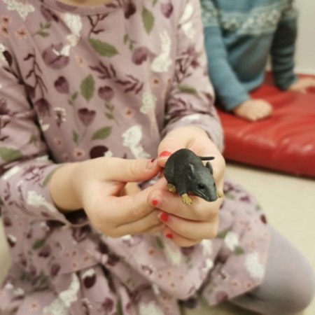 Eventyret handler om en mann som mister votten sin på tur og mange ulike dyr flytter inn i votten, det er alltid plass til en til. Vi ønsker at barna skal kjenne at det er alltid plass til en til hos oss også, om det er i lek, på tur eller i en aktivitet.
