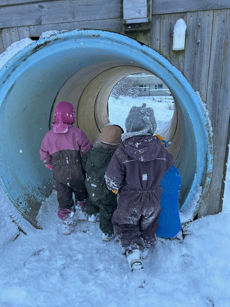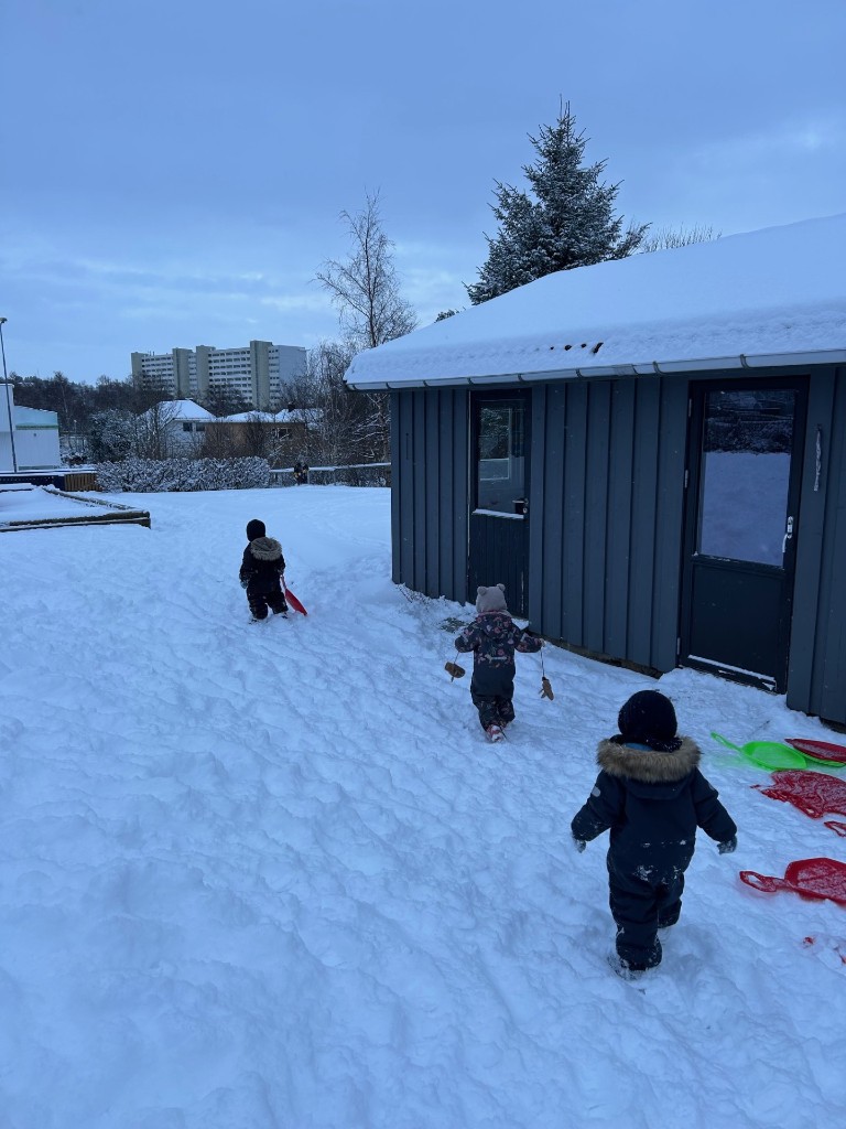 I barnehagen skal vi legge til rette for at barna får gode naturopplevelser året rundt, de skal få erfaringer med alle typer vær og vind og muligheten til å utforske disse. Å leke i snøen, renne på rumpebrett, finne nye plasser å ake eller bruke rumpebrett som snowboard. Alt er med å gi verdifulle erfaringer. Å fryse på hender og føtter, men klare å få varmen enten ved å varme seg litt ved bålpannen eller gjennom lek, det er mestring det!